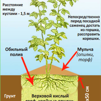 Место для посадки выбираем защищённое от северных ветров на солнце или в полутени. Голубика неплохо переносит близкое стояние грунтовых вод. Почву голубика предпочитает кислую, поэтому в посадочную лунку вносим торф, хвойный опад или опил. Сажать голубику с открытыми корнями лучше весной или осенью, растения с закрытой корневой системой (в горшках или контейнерах) можно высаживать весь вегетационный период. Оптимальное расстояние между кустами-около метра. Корневую шейку заглубить можно только слегка-примерно на 3см. Землю вокруг куста мульчируем опять же торфом, хвоей или опилом. Размножается голубика черенкованием, отводками и семенами.